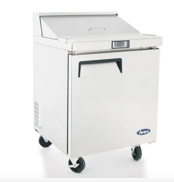 The 27-inch Atosa sandwich prep table comes equipped with a full width cutting board making it easy to prepare sandwiches and salads right on top of the unit. The convenient pan area on top can hold eight 1/6-size food pans, giving you and your customers plenty of variety on toppings and other ingredients available.